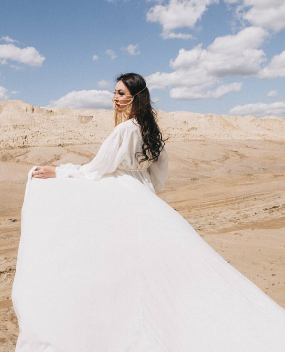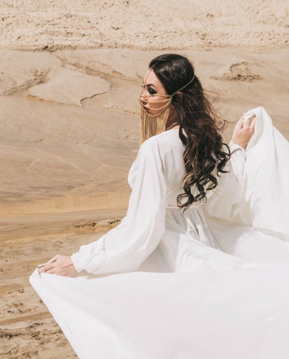 LUX Халат со шлейфом 42-54 и золотая маска